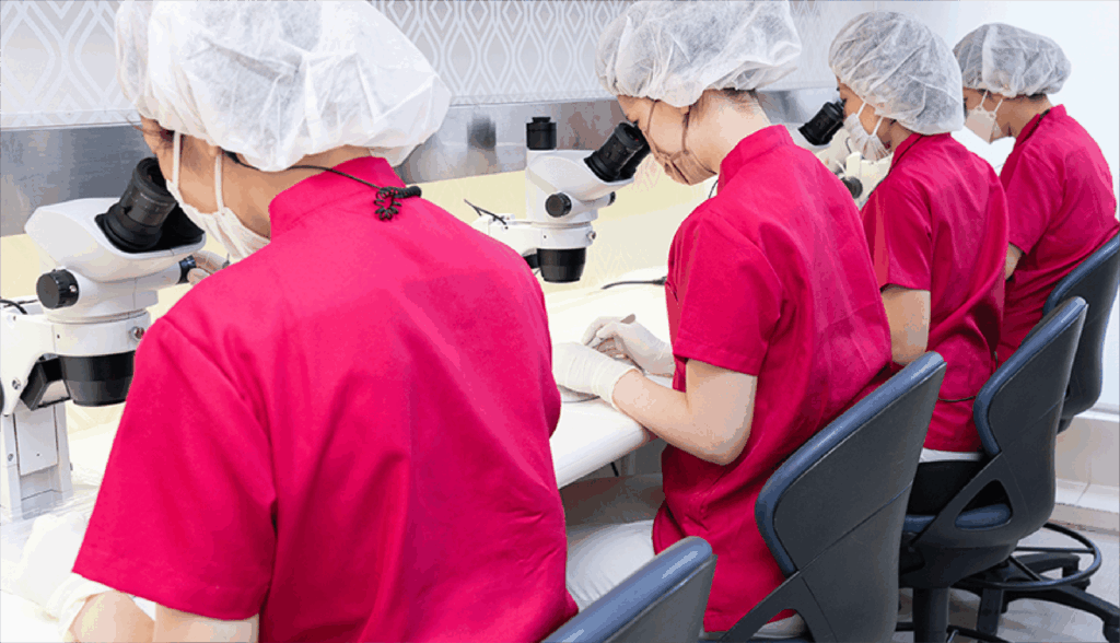 20 年以上の経験を持つ熟練スタッフが在籍し、FUT で重要な株分け(移植グラフトの作成)をはじめ、植毛の長年のノウハウを活かして、チーム全体で高品質な施術を支えています。
