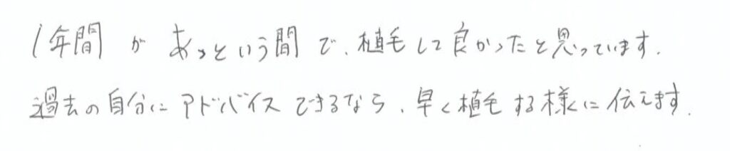 自毛植毛FUEを受けられて半年経過したモニター様に、施術を決断されるまでの経緯〜現在のご様子や環境の変化など、率直なご感想を動画内で語っていただきました。
