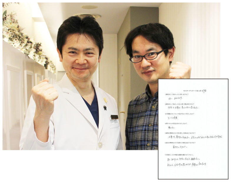 自毛植毛FUEを受けられて半年経過したモニター様に、施術を決断されるまでの経緯〜現在のご様子や環境の変化など、率直なご感想を動画内で語っていただきました。